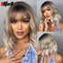 feature 1: Synthetic Short Women White Wavy Curly Wig with Bangs