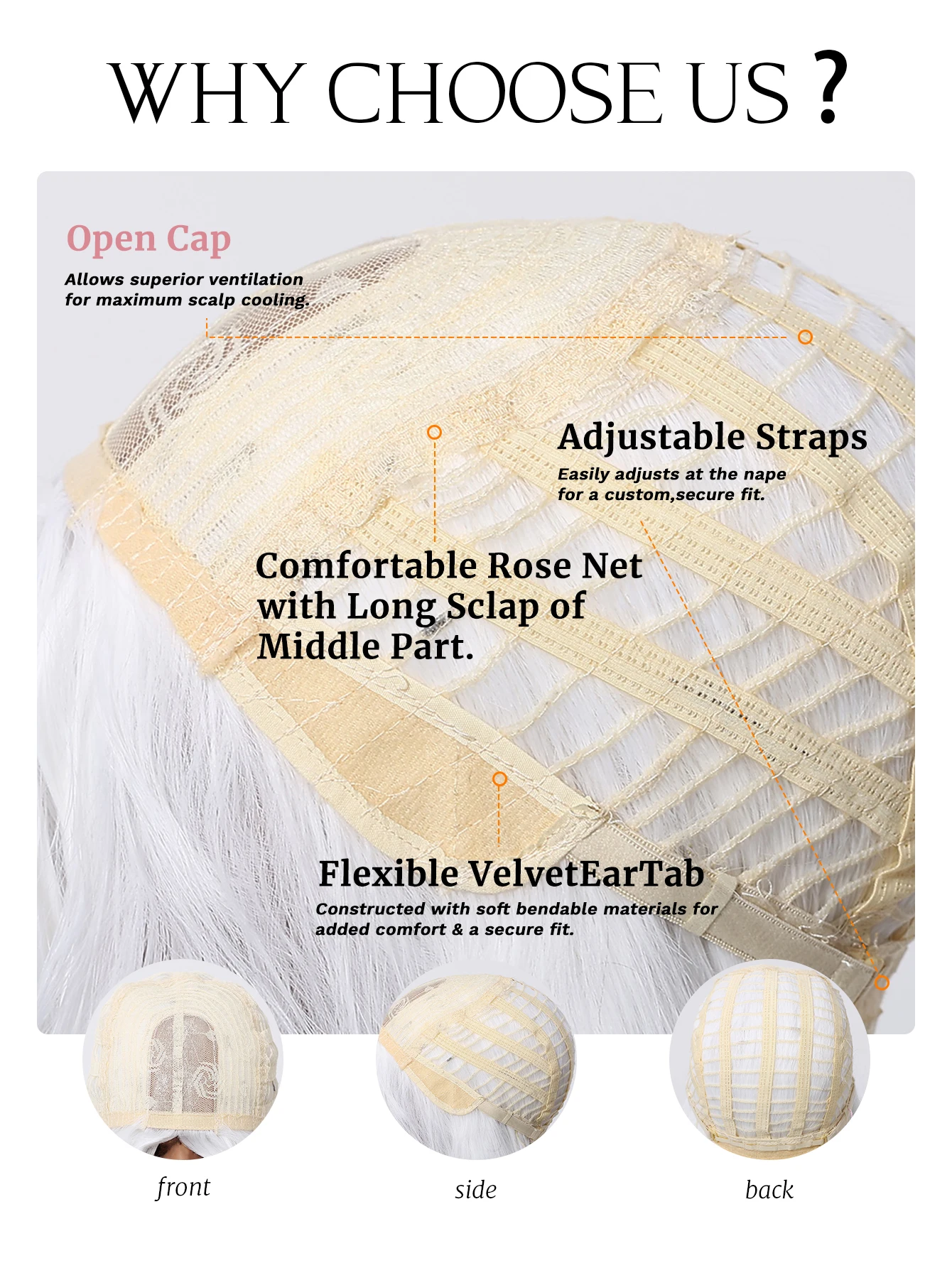 ❤ Hat and size: The size of the hat is medium. 100% breathability inside the mesh. There are two adjustment straps on both sides of the wig, which you can adjust to fit your head size.