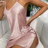 Simple Solid Satin Nightdress, Elegant V-neck Side Split Spaghetti Strap Sleep Dress, Women's Sleepwear & Dresses