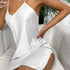 Simple Solid Satin Nightdress, Elegant V-neck Side Split Spaghetti Strap Sleep Dress, Women's Sleepwear & Dresses