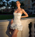 Stereoscopic Flowers Back Laceing Strapless Red Bandage Mini Evening Dress Sweet Woman Birthday Party Dress Performance costume