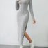 Stylish Solid Ribbed Split Dress - Elegant Women's Long Sleeve Crew Neck Dresses for Everyday Wear - Comfortable, Versatile, and Chic Clothing for Ladies
