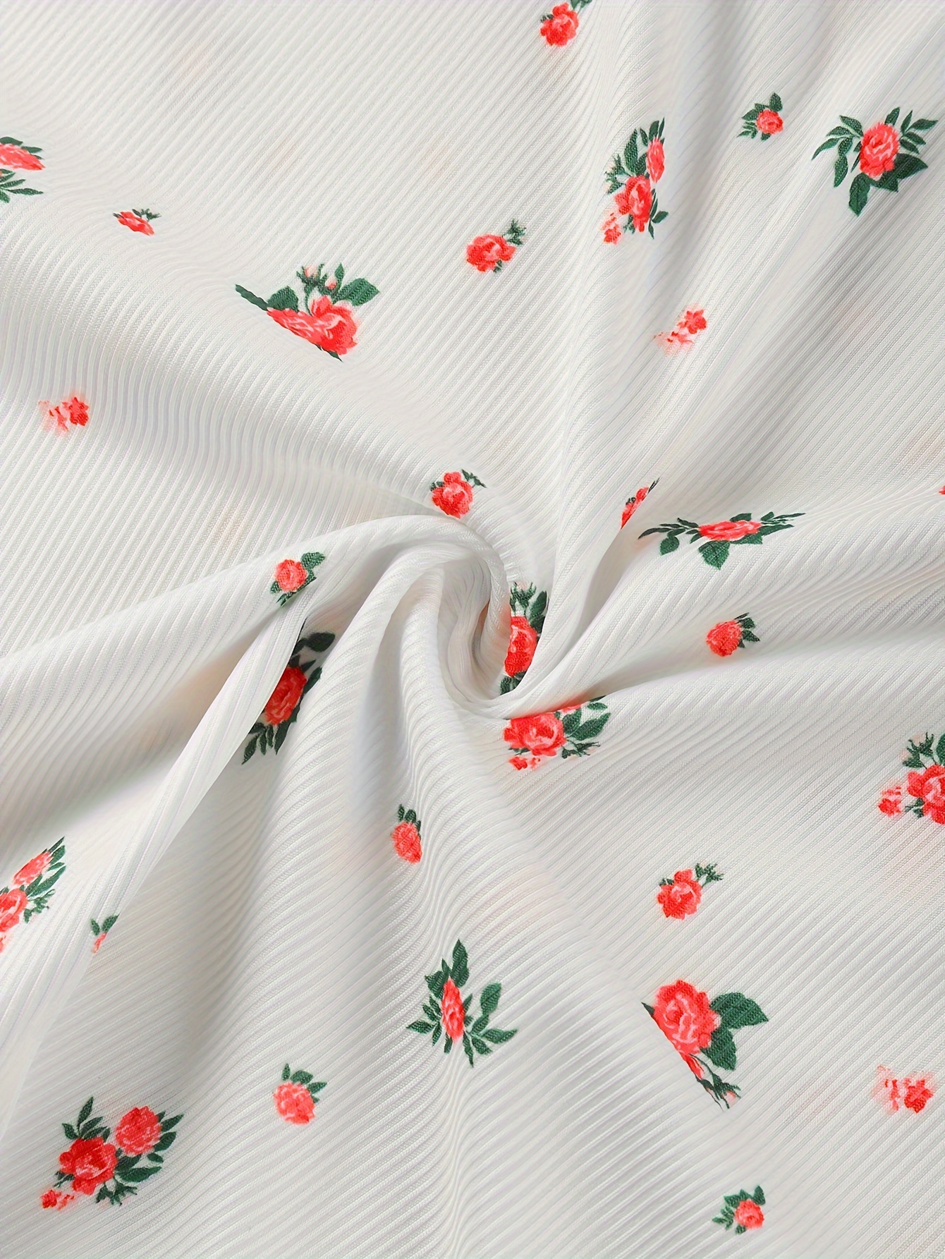 Sultry Floral Print Slip Dress, Criss Cross Back Sleeveless Babydoll, Women's Sexy Lingerie & Underwear