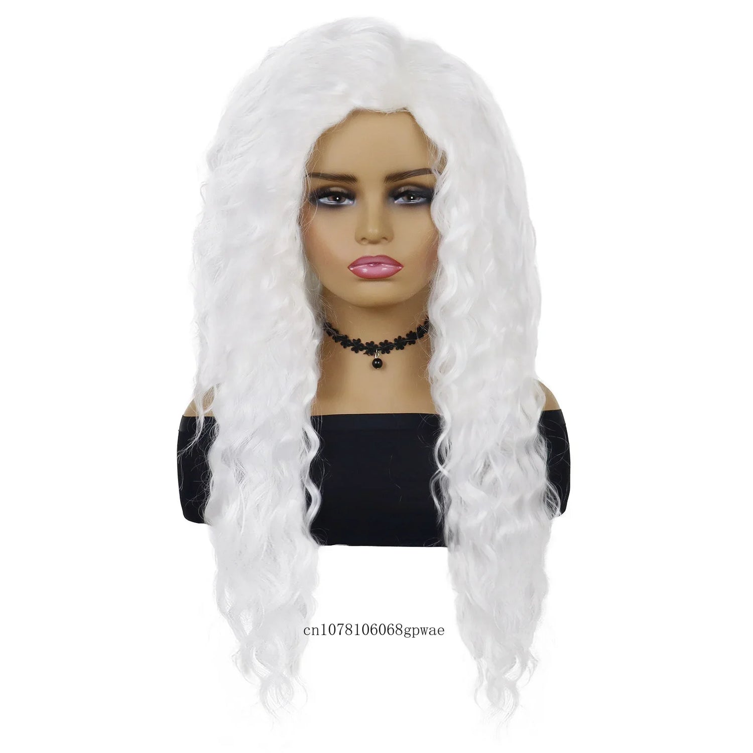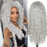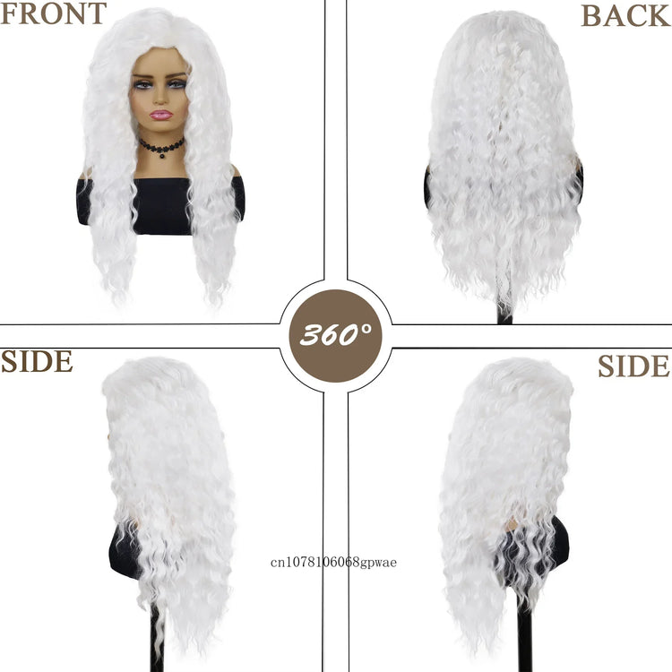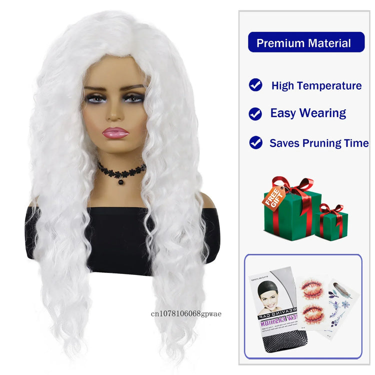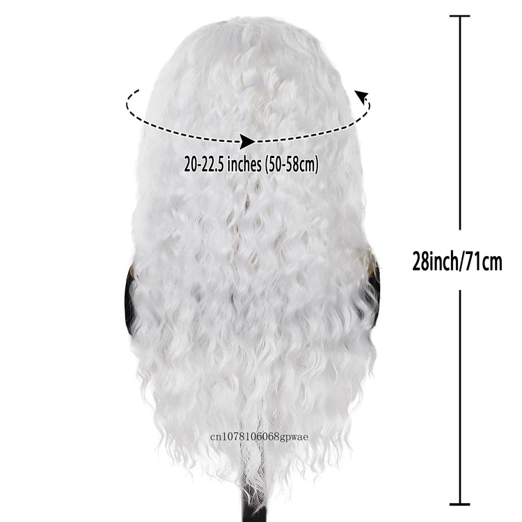 Synthetic Pure White Long Wavy Wig for Women Old Lady Water Wave Hairstyle Fluffy Loose Light Thick Wigs Cosplay Halloween Party