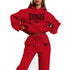 Two-piece tracksuit set with letter print for women, fashionable running sweatshirt, sports hoodie with drawstring, quality fitn