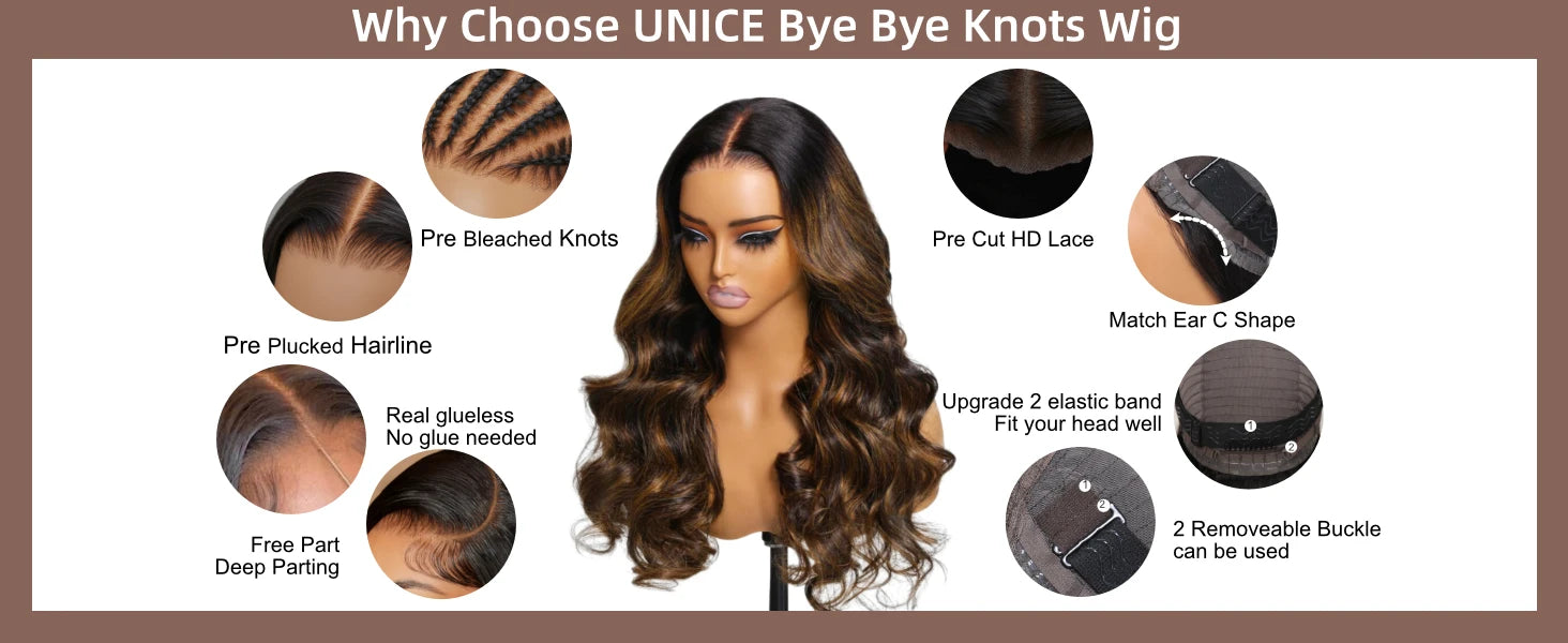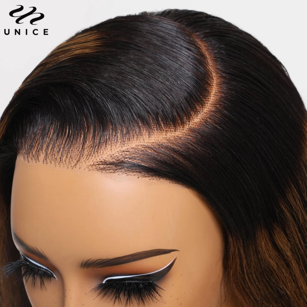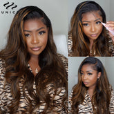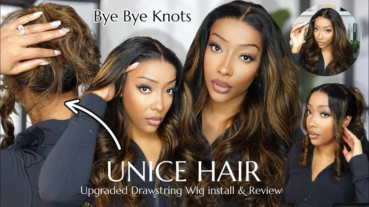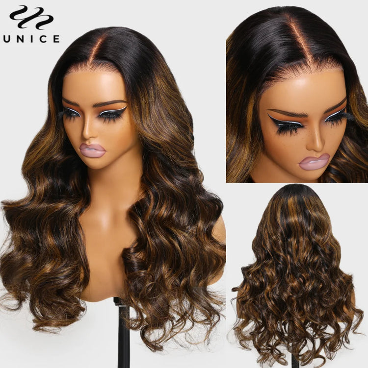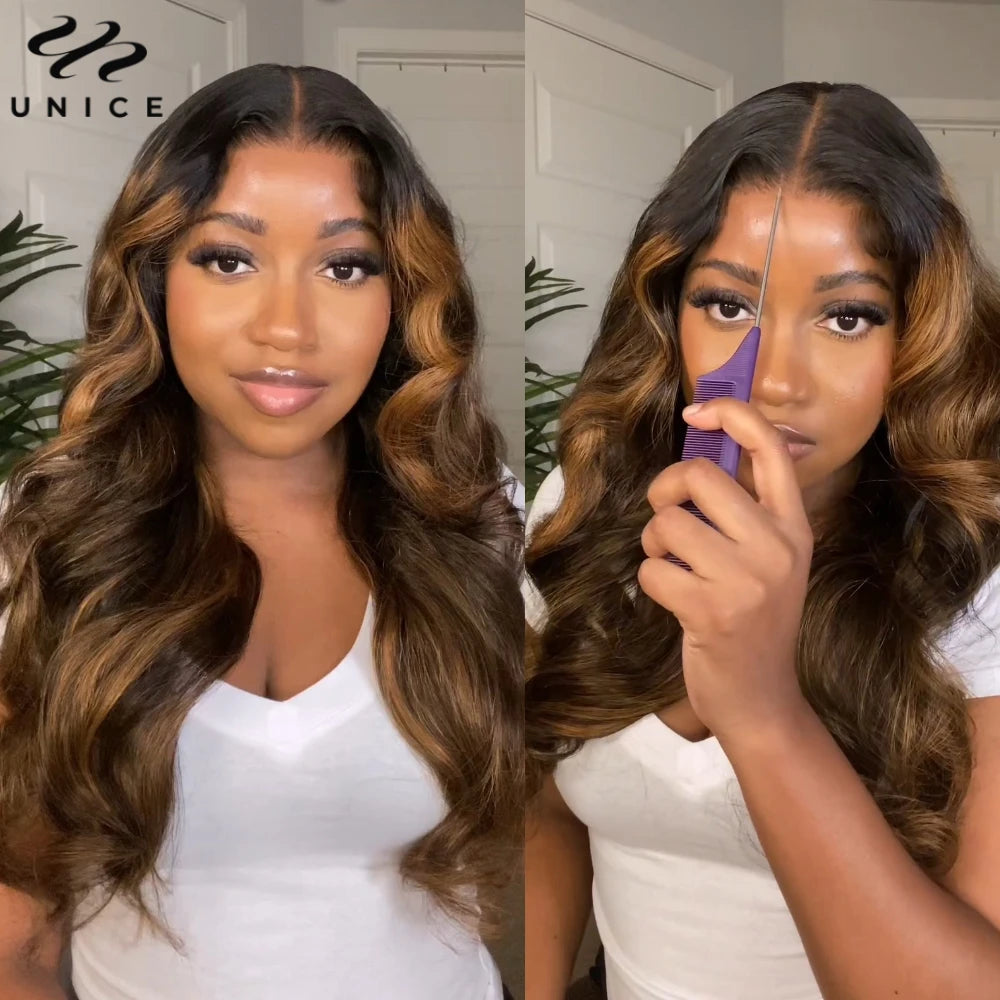 UNICE Hair Upgrade Drawstring Balayage Body Wave Wig 7x5 Pre Cut Pre Bleached Lace Front Human Hair Glueless Wig 150% Density