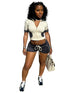 Women Sets Outfit Summer Streetwear Panelled Two Tone Slim Sports Short Sleeve Shorts Suits Zip Crop Tops Casual 2 Two Piece Set