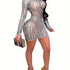Women Sexy Mini Dress Long Sleeve Hollow Out See Through Party Club Bodycon Dresses Bodysuit With Cut-Outs