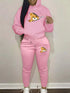 Women's autumn and winter fashion casual hip-hop street cartoon bear zipper print warm hooded sweatshirt+sports pants set