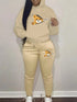 Women's autumn and winter fashion casual hip-hop street cartoon bear zipper print warm hooded sweatshirt+sports pants set