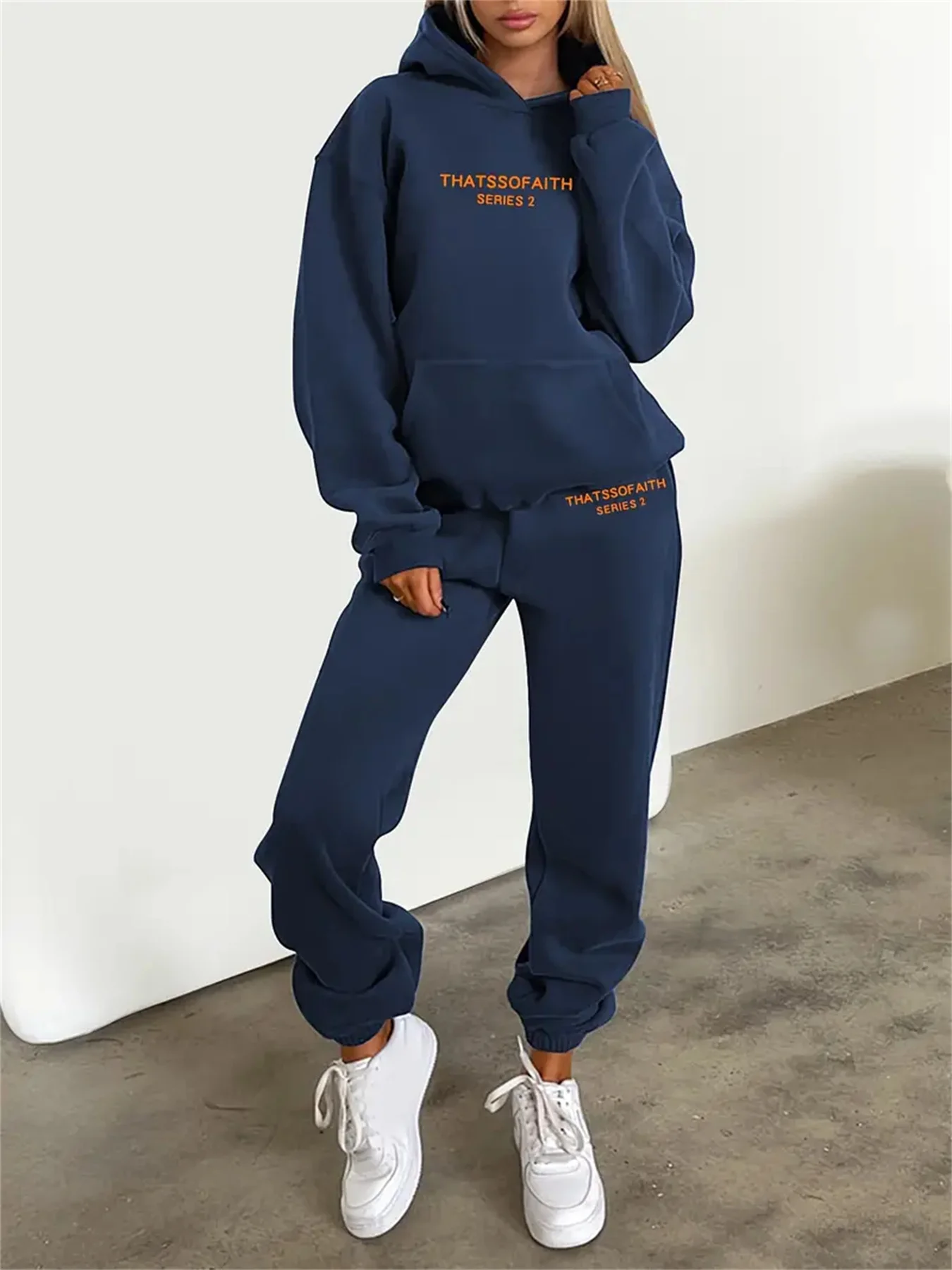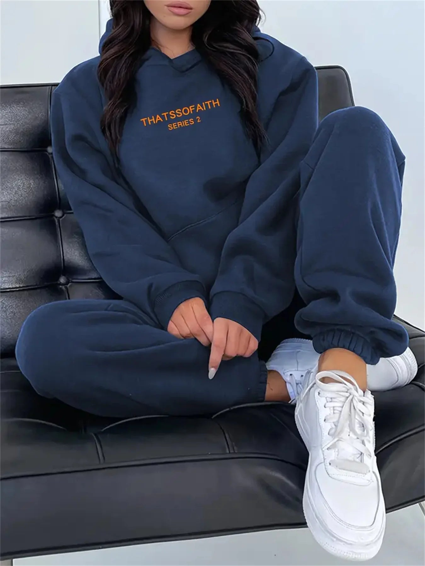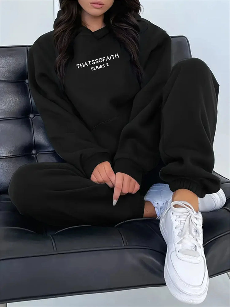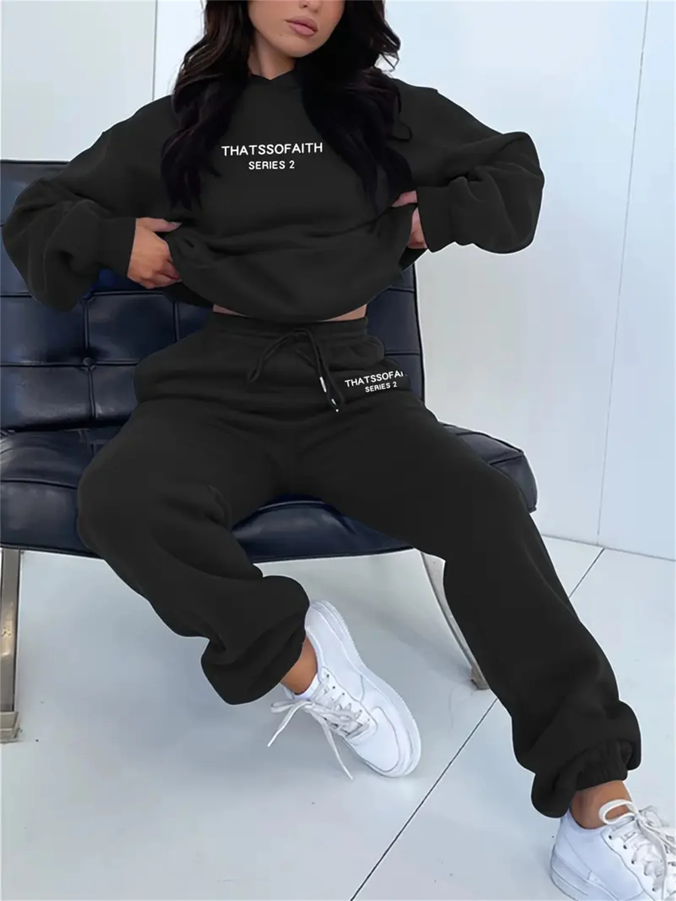 Women's Hoodie+Sweatpants Set Hip Hop Street Casual Letter Printed Loose Sweatshirt Autumn Fleece Warm Clothing