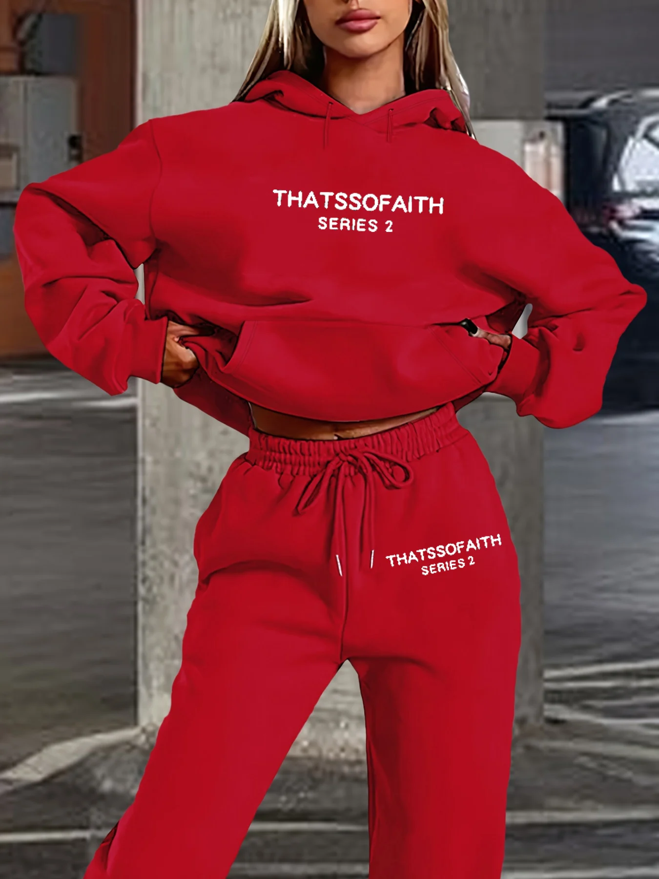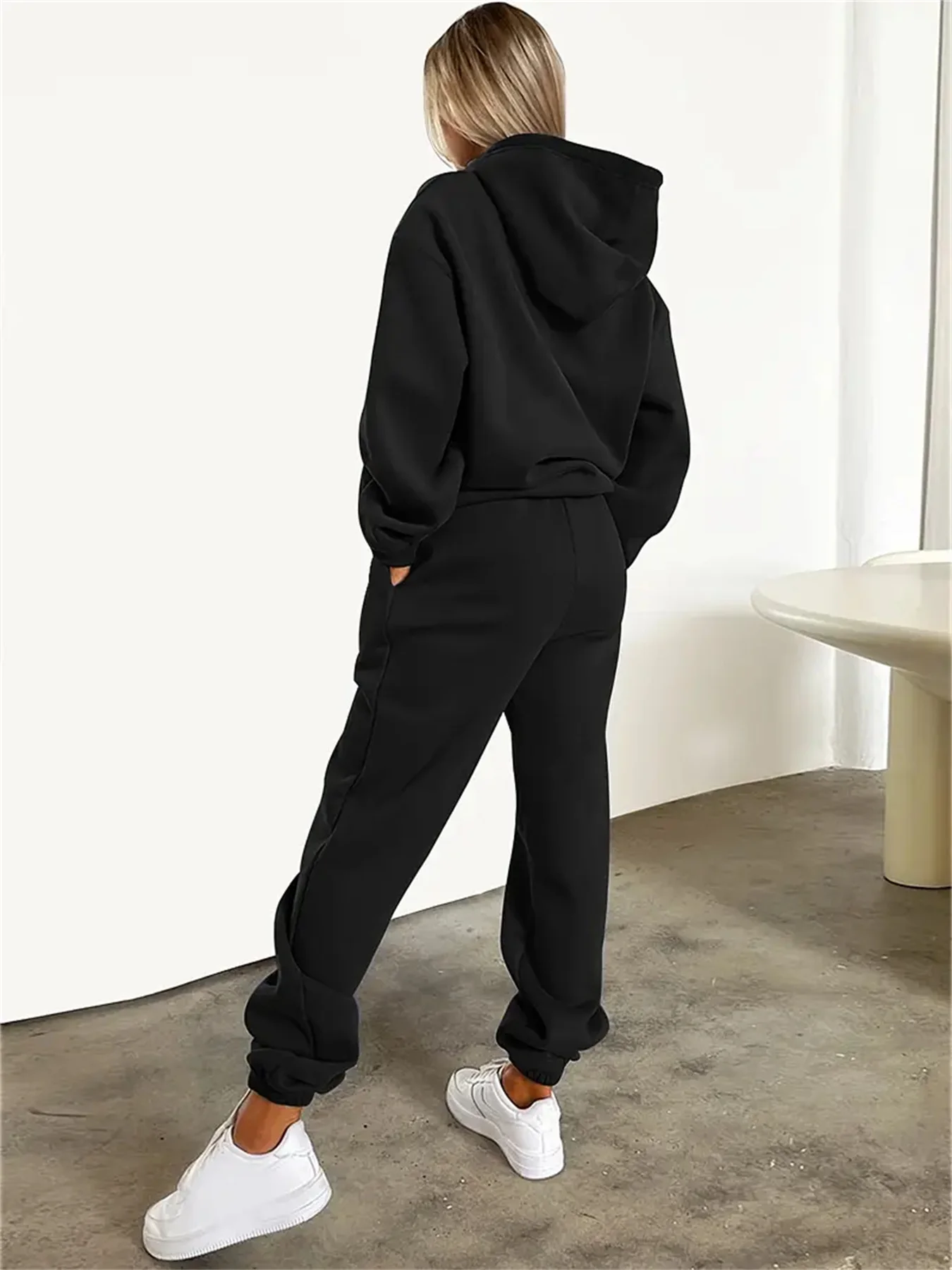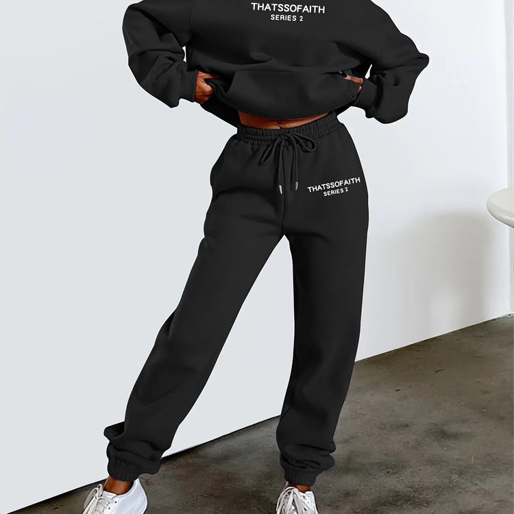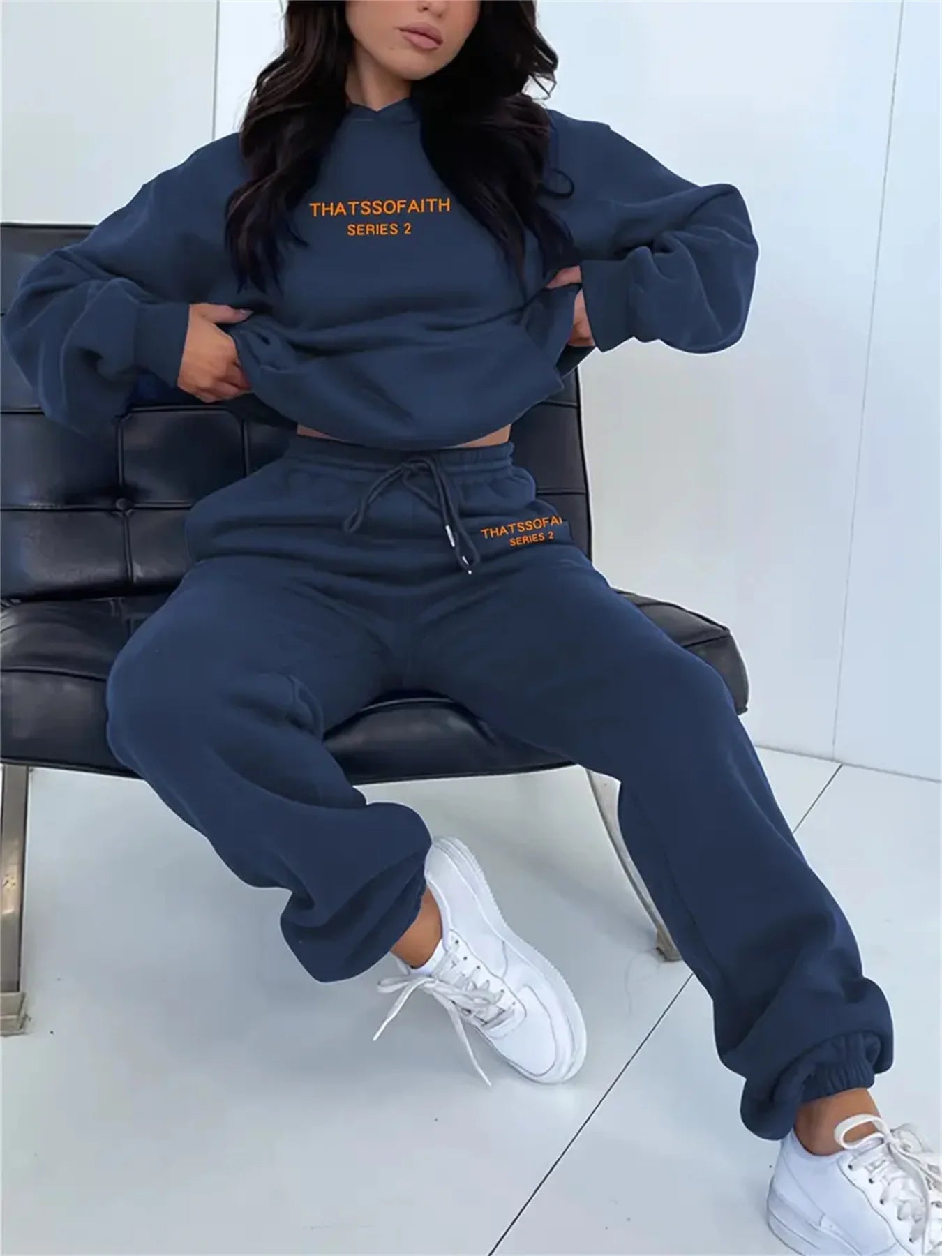 Women's Hoodie+Sweatpants Set Hip Hop Street Casual Letter Printed Loose Sweatshirt Autumn Fleece Warm Clothing