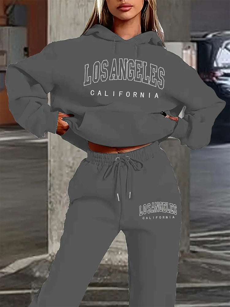 Women's Hoodie+Sweatpants Set Hip Hop Street Casual Los Angeles California Printed Loose Sweatshirt Autumn Fleece Warm Clothing