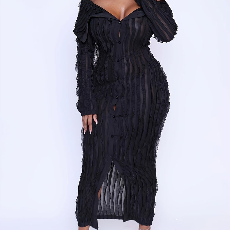 Women's Off The Shoulder Long Sleeve Dress Button Down Sexy Bodycon Dresses