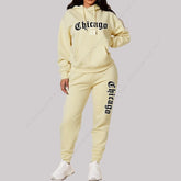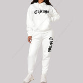 Women's Sets Hoodies Pants 2 Piece Outfits Aesthetic Sportswear Sweatsuit Chicago Graphic Letter Print Plus Size Pink Tracksuit