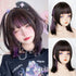 YELOWTIM Short Lace Front Wigs with Bangs Synthetic Straight Anime For Women Black Gray White Hair Cosplay Wig for Daily Party